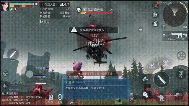 在面对武装直升机的时候,一定要在最短的时间内进行最大程度的输出,不要将时间大量浪费在躲避攻击上,因为武装直升机并不存在弹药短缺的问题,所以绝对不能将战斗打成消耗战,在武装直升机出现的那一刻,快速拉开一定的距离,然后进行集火攻击,正确最快速度解决战斗。
