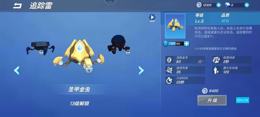介绍:检测到附近有敌人后,会自动追上去进行自爆攻击,给敌人造成减速与无法攻击。但是追踪雷最多只能放3个哟 。