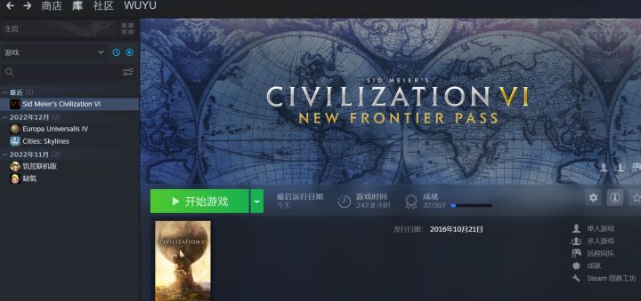 有没有大佬知道,为什么我的文明6点了开始游戏,又进不去游戏,一会后又变成了开始游戏😭