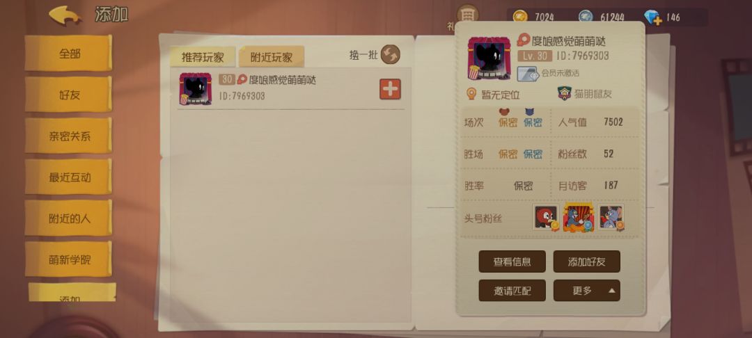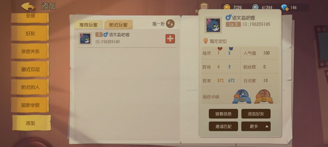 图是我单排匹配,以及队友对手的历史战绩。对手主播,人家s皮肤一堆,人气七千多。三队友不知道是人机还是萌新,名字都是预设的。最近几局匹配,匹配到五个字名字的,有的队友从头挂到尾,有的队友梦游。出洞就站着不动,有时候都也检测不出挂机。不过可玩性还是很高的,现在越来越好了。像这样迷之不公平的匹配只是少数情况。我玩猫,鼠方个个人气七千多,我玩鼠,猫又七千多人气。就算回归玩家,匹配的三个鼠也太菜了吧,梦游。如果可以选择中等水平老鼠人机当做队友去打匹配就好了。一些队友真不如人机,他们的水平打人机也够呛,为啥要给匹配那么厉害的猫。