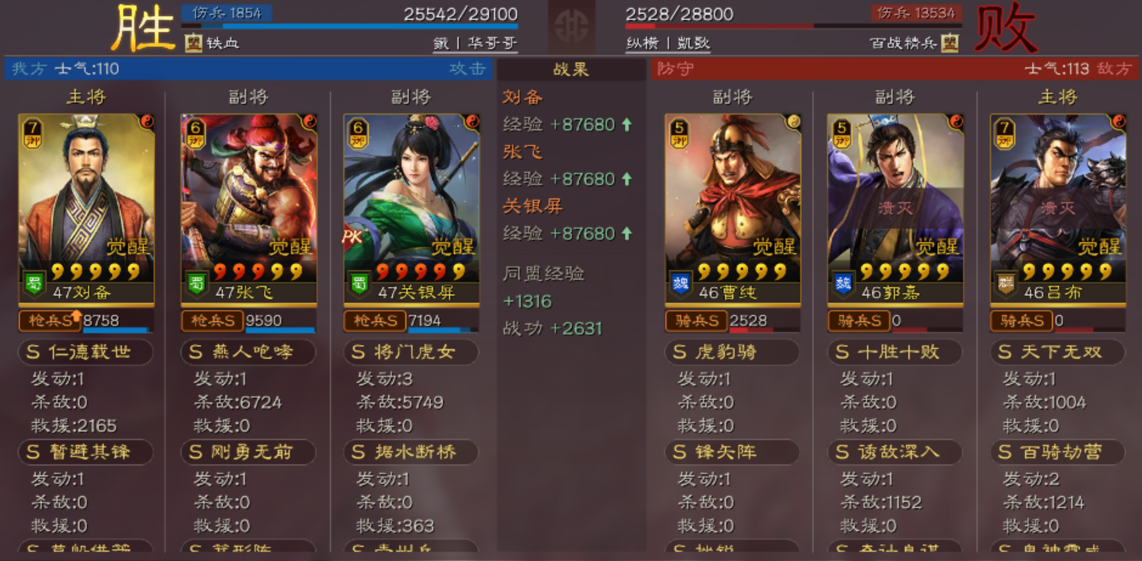不仅如此,本队还拥有张飞的刚勇咆哮,稳定的超高前4回合输出,以及关妹的控制输出,有输出有治疗有控制,非常的优秀。唯一的问题,就是得拆队,父女队桃园队五虎队,都不能玩。