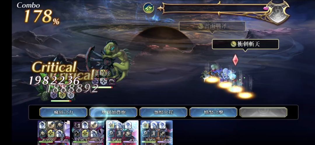 🔹雷雨战斧【连击+必爆+觉醒阵+发动自身疯狂之力】