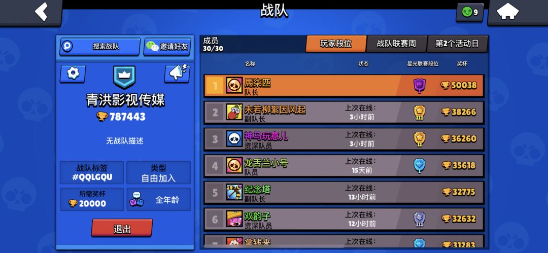我们7个人左右,均杯3w,我5w,之前是战队队长,家族混子太多也没时间招新,奖励打不满,很糟心有活跃战队需要清人的联系