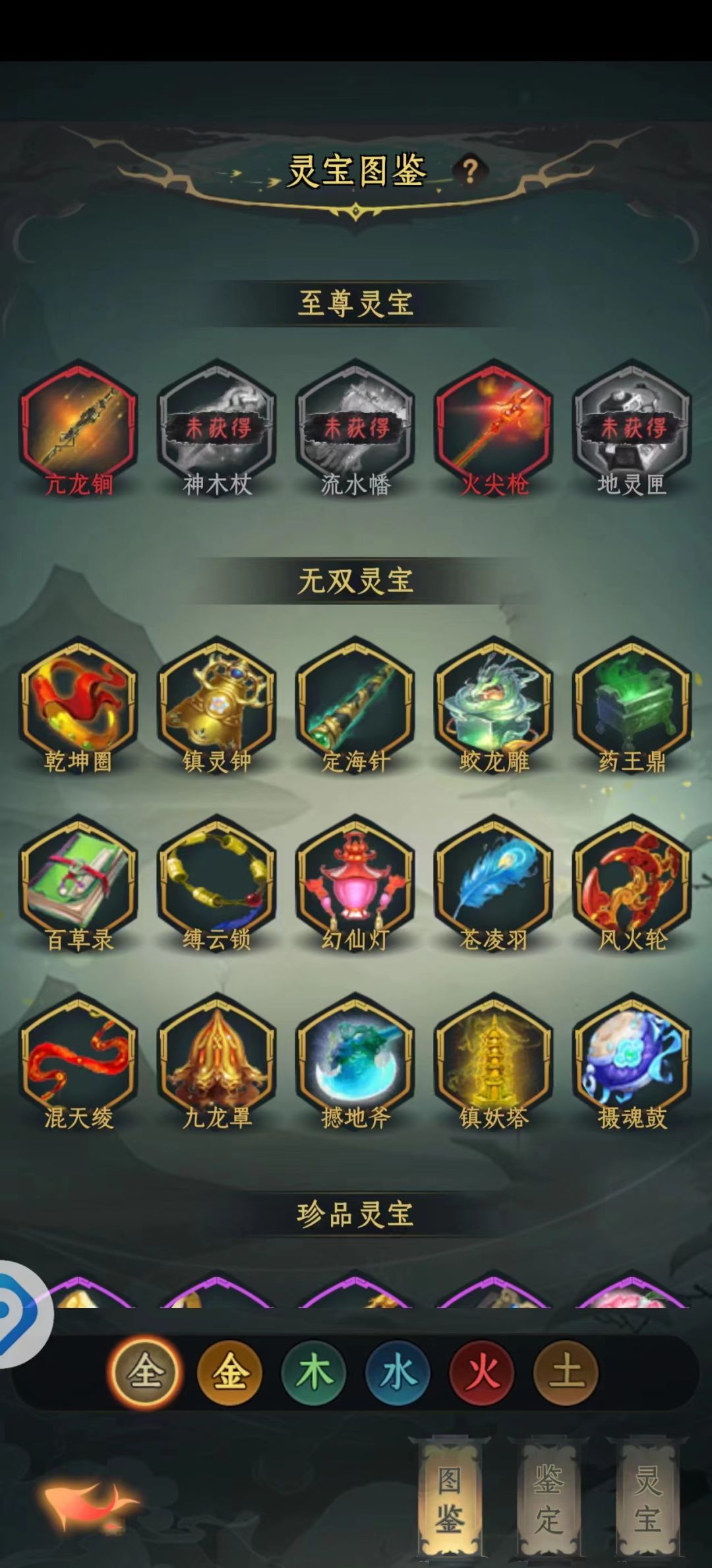 灵宝分为金木水火土,五行相生相克,一共有221级,好像是十天左右开吧,搞忘了,其中珍品和和无双都能很简单的获得,等级可以全部升满,升变的话一个属性升变一个满级就行了,重点就是至尊灵宝,获取途径就是5000块充值礼包的火尖枪和5万充值的任选礼包,还有就是抽卡看脸(很多人都有抽到),主养亢龙锏,实在不行就是养火尖枪,都没有就积累资源等待抽到的那一天,升变资源唯一的途径就是帮会商店里面的每周25个至尊精魄,重复抽到至尊灵宝也能得100个,但是这个太难了,基本只要每天参加帮会活动,这个也很简单,想要更多的资源,最好就是组三个固定班子,长期玩下去,资源多多,方向就是这样,积累资源,等待化龙。。。