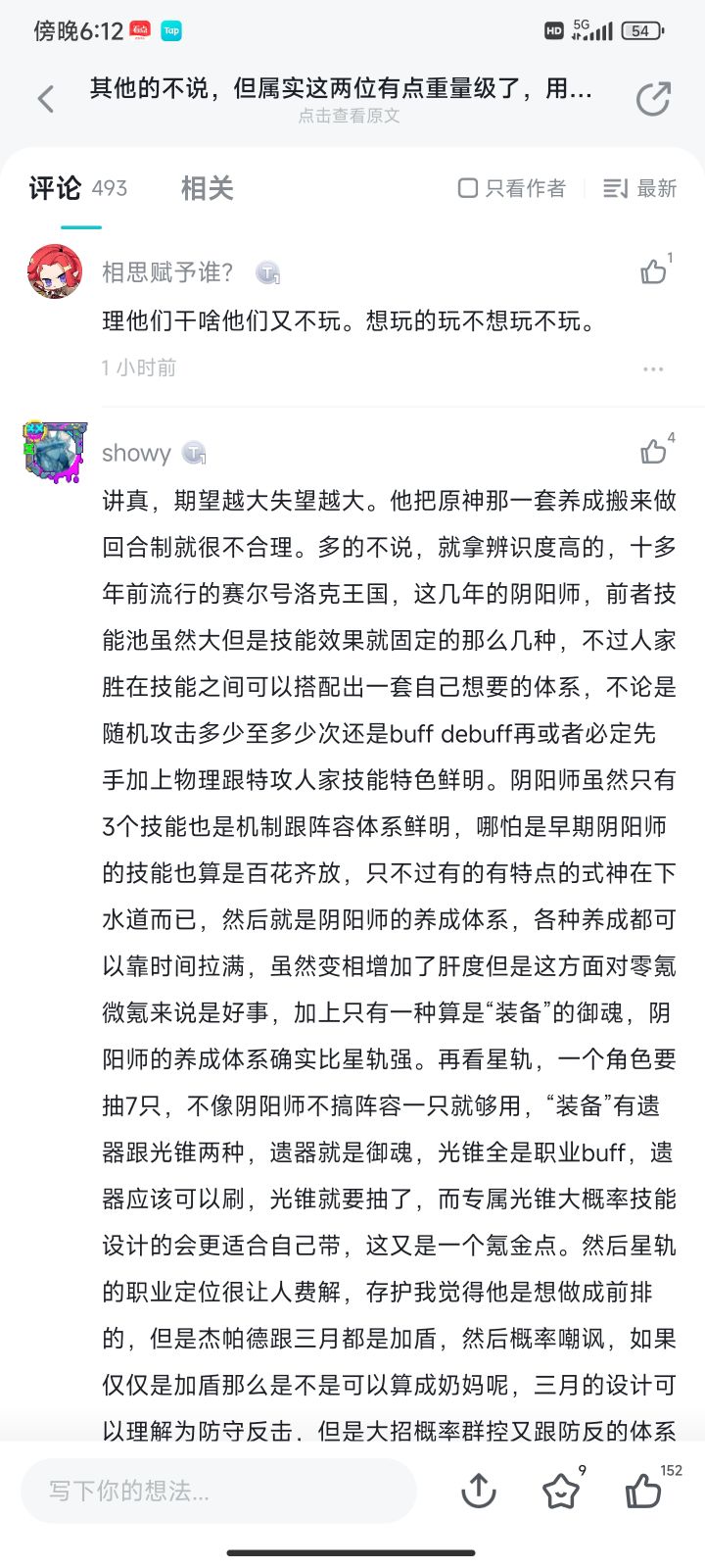讲真,期望越大失望越大。他把原神那一套养成搬来做回合制就很不合理。多的不说,就拿辨识度高的,十多年前流行的赛尔号洛克王国,这几年的阴阳师,前者技能池虽然大但是技能效果就固定的那么几种,不过人家胜在技能之间可以搭配出一套自己想要的体系,不论是随机攻击多少至多少次还是buff debuff再或者必定先手加上物理跟特攻人家技能特色鲜明。阴阳师虽然只有3个技能也是机制跟阵容体系鲜明,哪怕是早期阴阳师的技能也算是百花齐放,只不过有的有特点的式神在下水道而已,然后就是阴阳师的养成体系,各种养成都可以靠时间拉满,虽然变相增加了肝度但是这方面对零氪微氪来说是好事,加上只有一种算是“装备”的御魂,阴阳师的养成体系确实比星轨强。再看星轨,一个角色要抽7只,不像阴阳师不搞阵容一只就够用,“装备”有遗器跟光锥两种,遗器就是御魂,光锥全是职业buff,遗器应该可以刷,光锥就要抽了,而专属光锥大概率技能设计的会更适合自己带,这又是一个氪金点。然后星轨的职业定位很让人费解,存护我觉得他是想做成前排的,但是杰帕德跟三月都是加盾,然后概率嘲讽,如果仅仅是加盾那么是不是可以算成奶妈呢,三月的设计可以理解为防守反击,但是大招概率群控又跟防反的体系沾不上边,杰帕德作为五星,大招群体盾,关键盾薄还不稳定我不知道他“护”在哪里了,战技单体加概率冰冻,说实话,一个前排或者盾奶的角色,单体输出肯定没多高,控制还看脸,为什么设计的时候不设计成群攻加看脸控或者单体稳定控呢,作为5星,我不知道杰帕德跟“存护”这两个怎么沾得上边。然后所有负面效果全都是概率加,没有稳定debuff跟异常状态,群攻该压血线压不下来,单体该集火爆发又不一定能秒掉,小怪3下杀你这边一个,主要有的怪都有嘲讽,我不明白他为什么不给存护这种前排安一个,就喜欢冰冻。剧情又臭又长,满世界跑就为了对个话,我上次用又臭又长来形容剧情的还是17年玩天刀的时候,人天刀剧情打完好歹就自由了,星轨做完还要接着做一个又一个支线,如果为了体验这种满世界跑的,网游去玩天刀逆水寒,单机去玩塞尔达大镖客,手游再咋还有米忽悠的原神,何必来玩星轨。角色的保值度这点,玩过阴阳师的都清楚,作用类似的,但凡出一个新的跟你作用类似然后比你强那么一丢丢,那你大概率就成下位替代了,再出一个你就退环境了,在这种环境下,你抽7只拉满的角色变成下位替代我不知道各位可不可以接受,主要还是90抽保底50%概率up,脸黑180抽一只,玩了三天算是比较咸鱼的我希儿池子也就抽了30抽。还有姬子板鸭希儿的人设问题,他们跟崩2崩3还是同一个人么?如果搞情怀,那么就别改人设,要做一个人设相似的不如学学原神的雷神对应芽衣身子对应八重樱,星轨的则顶着同样的名字同样的皮囊内心却完全换了个人,那你不如直接换个人算了,因为有崩坏这两个字就非要出现前作的角色吗?还是改人设版的,虽然三崩子我已经四年没碰了,但是你随意改人设真的会让原本喜欢前作角色人设的玩家接受不了。现在我坚持下去的动力也就是想看看后面会不会有新装备来增加目前的各种看脸技能的概率,看看他战斗跟技能组到底是不是那一坨屎,因为宇宙玩法理由150%概率上debuff,所以效果命中跟效果抵抗在后面会不会有太大作用还不清楚,有没有新装备新的效果还有各个角色之间会不会有技能上的联动也都不清楚。能吐槽的太多了肯定说不完,总结下来,一年前看到预约时有多期待现在就有多失望