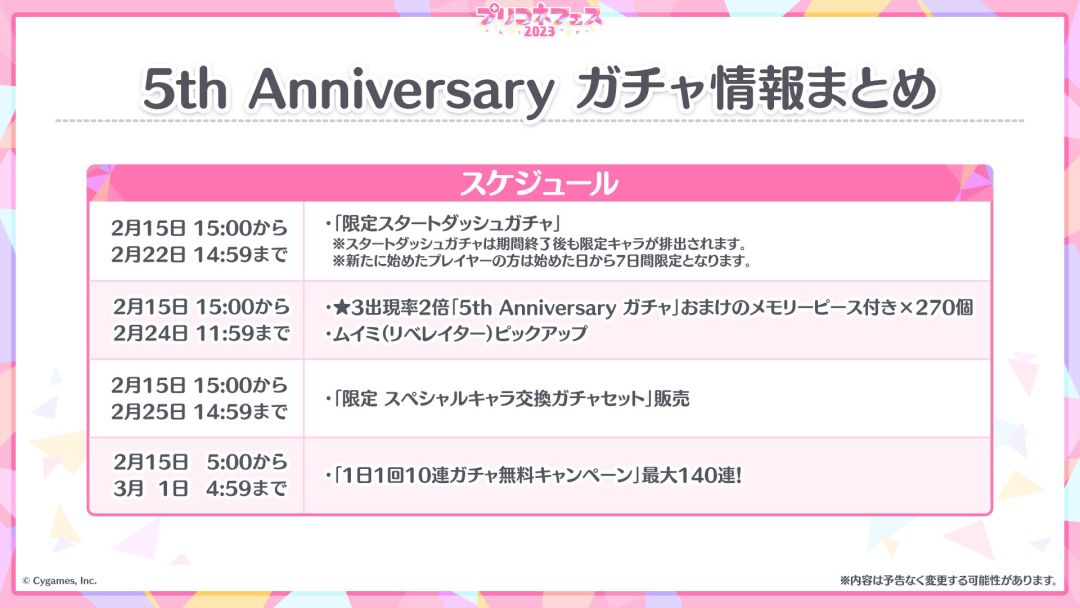 五周年扭蛋大家想到啥?对,免费十连和Princess FES,不废话,看图。
