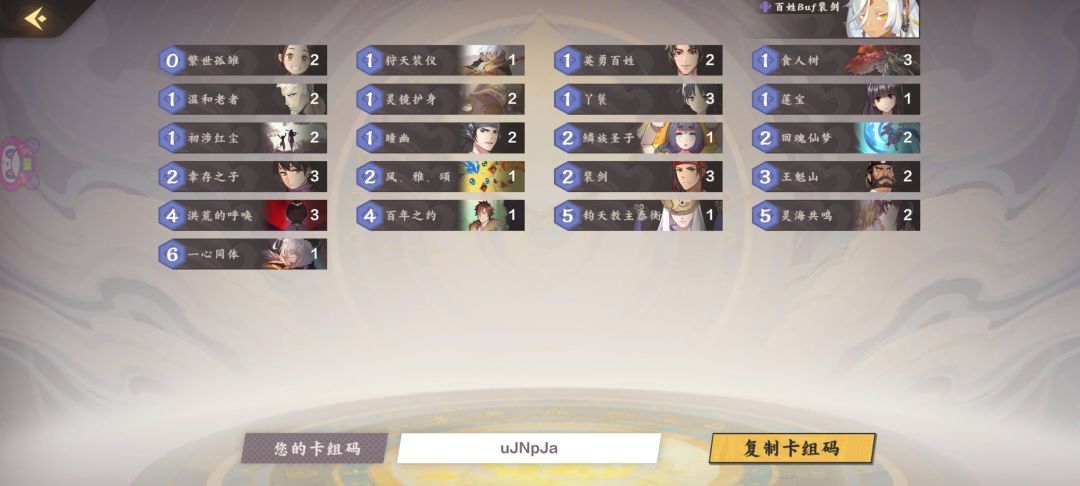 灵系 2费裴剑,5费灵海共鸣(变9/9 )都是契合百姓buff,奠定胜局的强力资源。