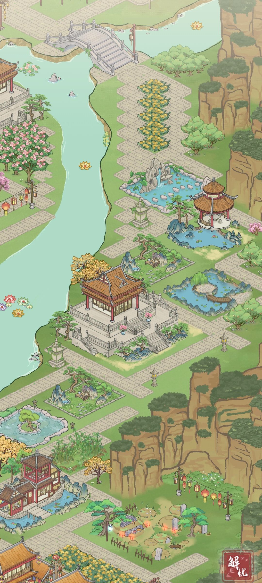 附上燕草屿上的区域建筑——琴棋书画小公园