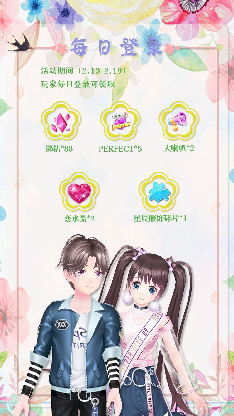 如果没有安排的话,不如和乐宝一起玩游戏吧情人节福利活动多多,当天登录游戏送手持;充值免费领耳环、新品背饰、精美服装、坐骑,你确定不来炫一波?