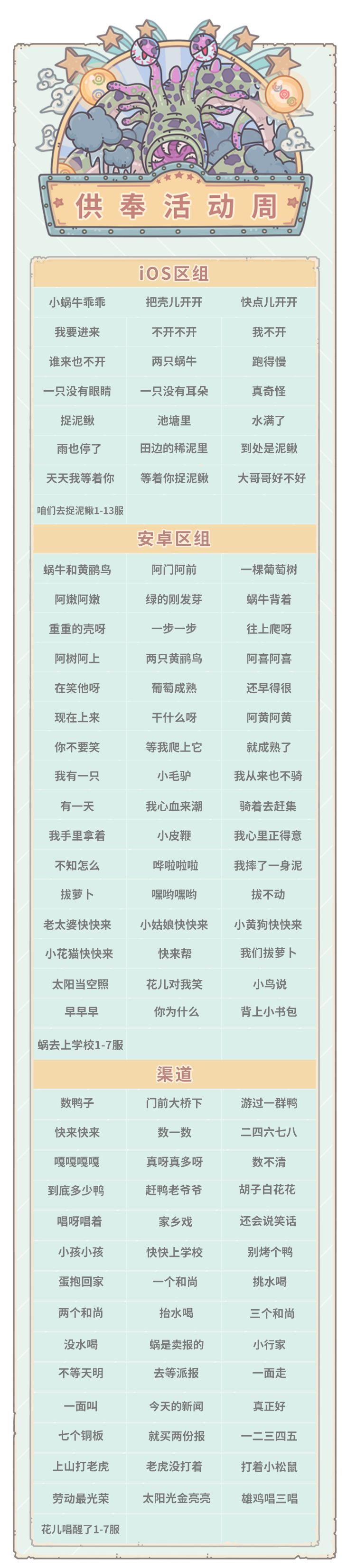 本周五(2月17日)凌晨五点,部分服务器活动将更新为神坛秘仪,以下是进入周活动的区组。