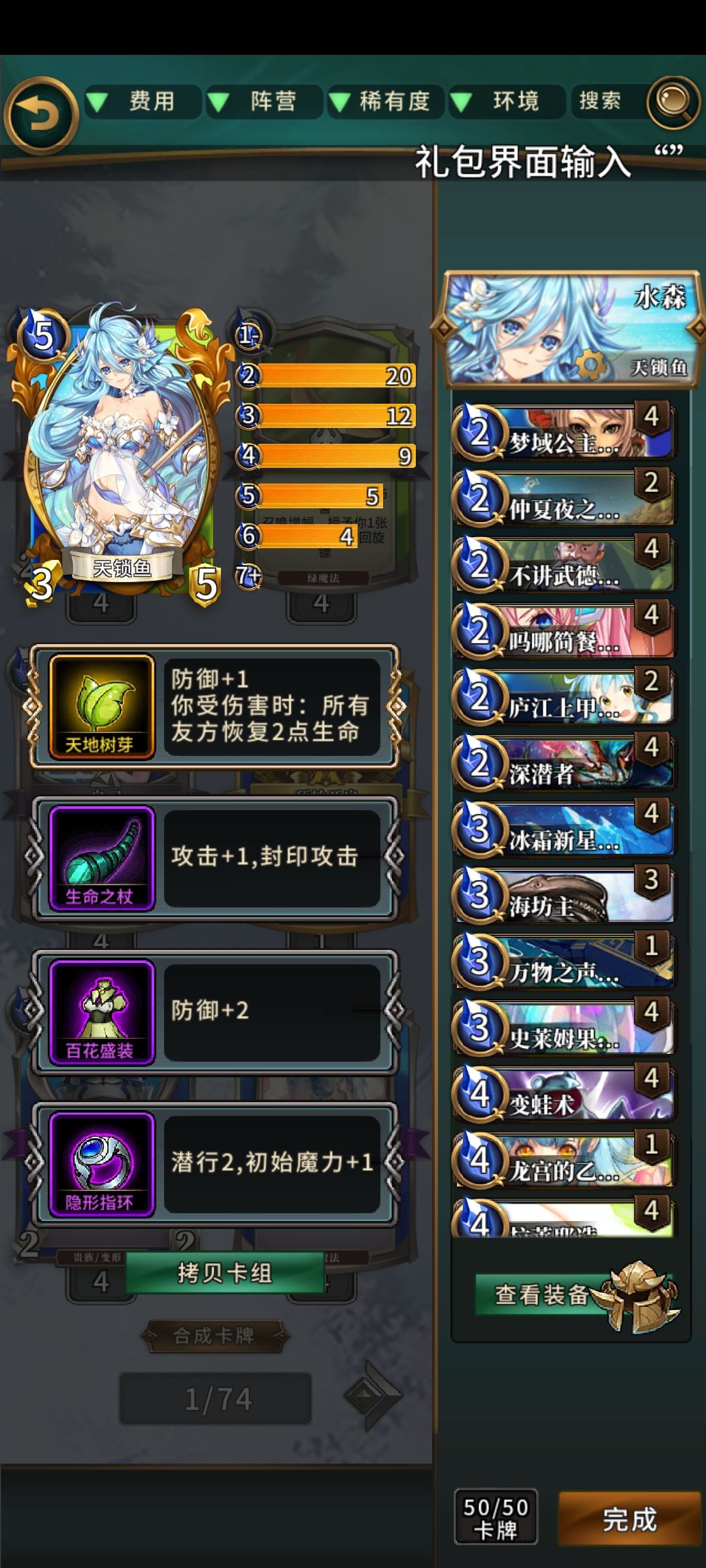 注释②:本卡组前期场面很强,完全可以假装你是水族鱼并和对方正面抢血,5费后再露出獠牙。