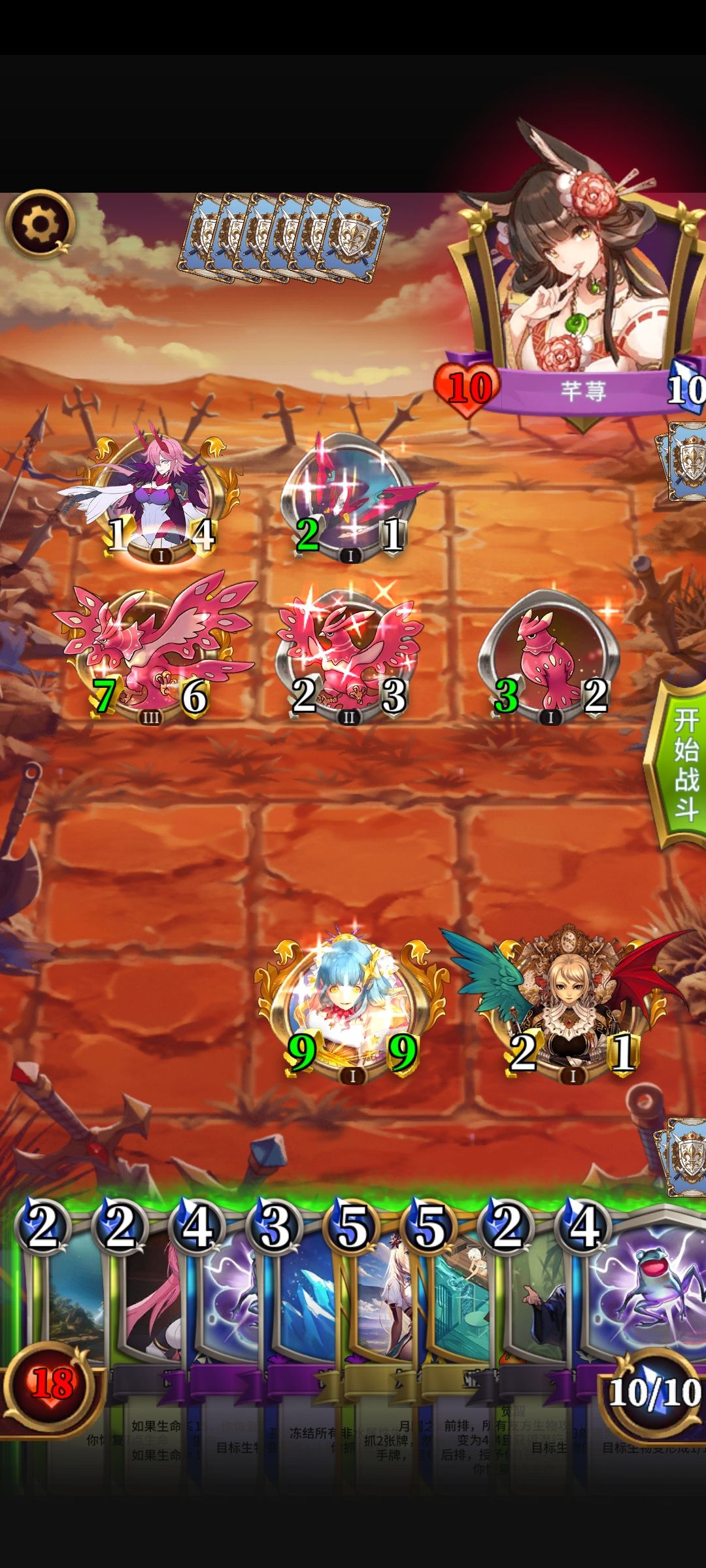 如果以上皆不适用或卡手,则4费拍本体,5费孤注一掷全部buff给到本体,用扬升卡【底轮开启】给本体嗜血打脸 或 走位后用背叛/偃月开路打脸取胜。