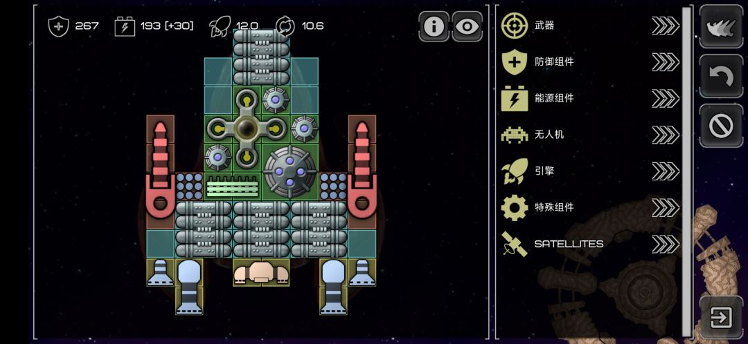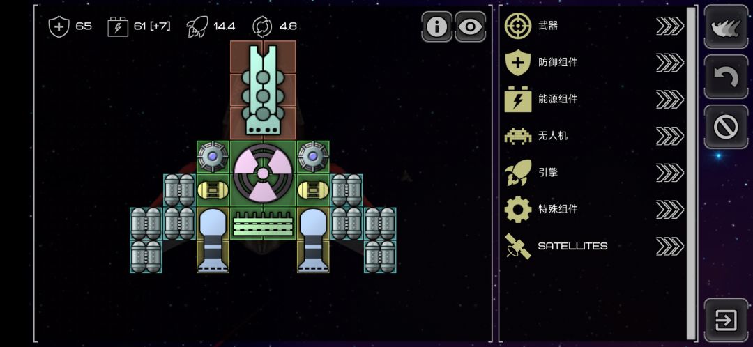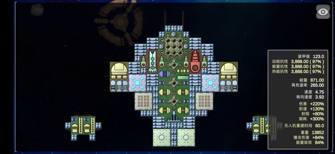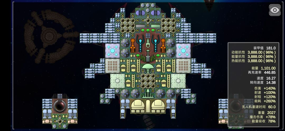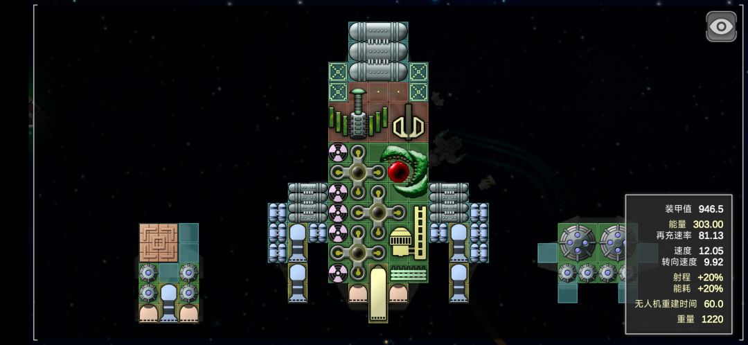这艘船的配置思路很多,中间的炮口是360度自瞄的,放弃速度装死光也是的不错的选择。