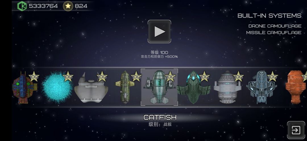 配这艘船的时候提一个概念,新版本在选船界面右上角加入了一个新的说明,一些船的特殊能力或者内置系统会显示在右上角。CATFISH这艘船自带无人机伪装和导弹伪装,很强。