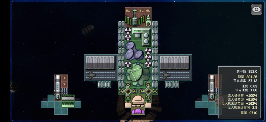 ehf里船的配置思路与eh略有不同,ehf守住空间站就行,速度快就去近身,速度慢就守空间站,所以速度是可以忽略的,这让很多黄格少的船站了起来。