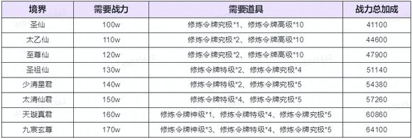 看到有很多人想要完整的境界划分表还有晋升条件,我就按记忆和截图整理了一份表格,希望对大家有所帮助。