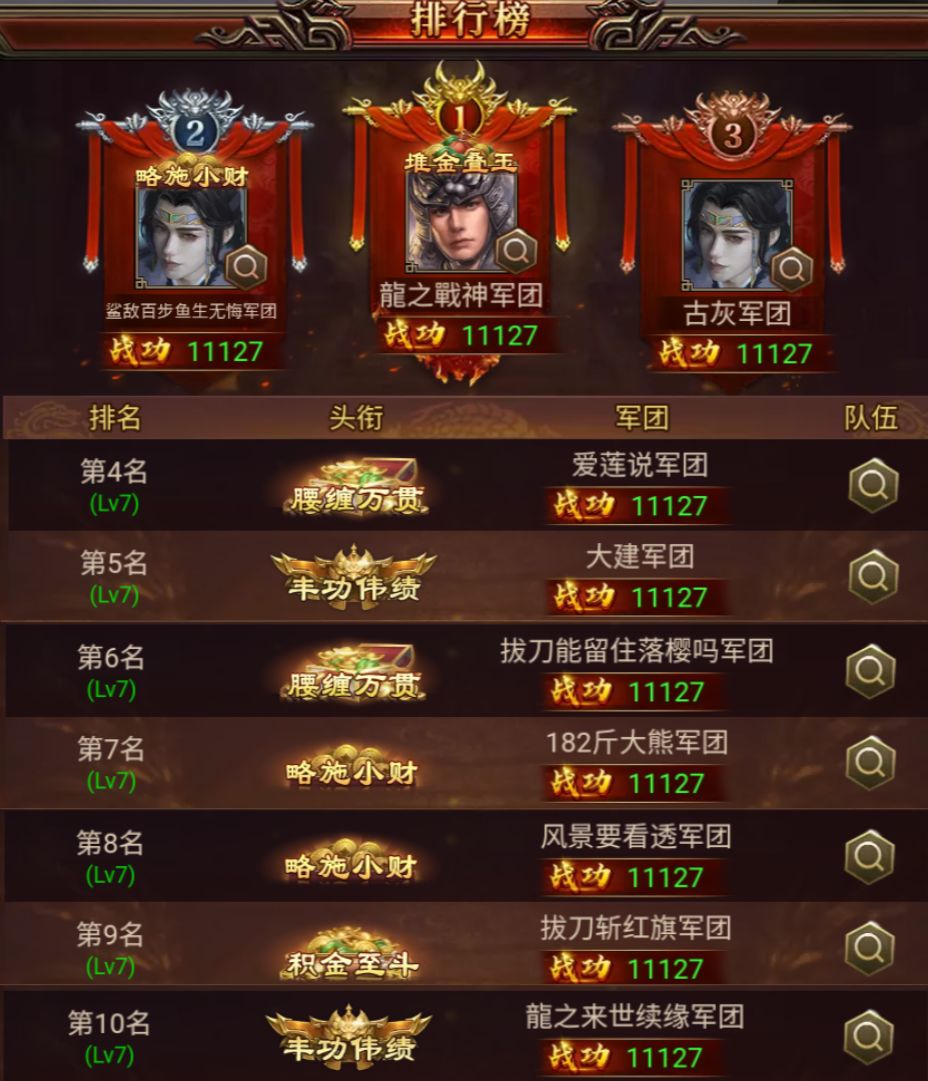 本期的排行榜就给各位主公们介绍到这啦~