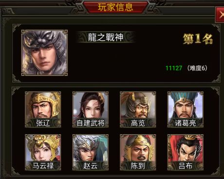 在这次的战役中,龍之戰神选择了 张辽、高览、诸葛亮、马云禄、赵云、陈到、吕布和一位自建武将一同征战。