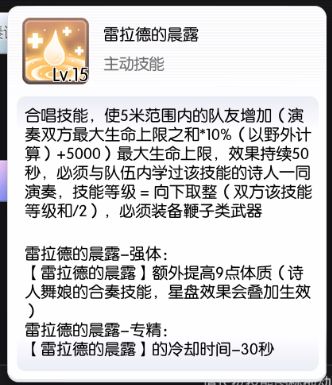 1、合唱技能,出门前3秒释放。相当于全队+BUFF。特别是雷拉德的晨露,可以放符文,整队HP提升30%以上。