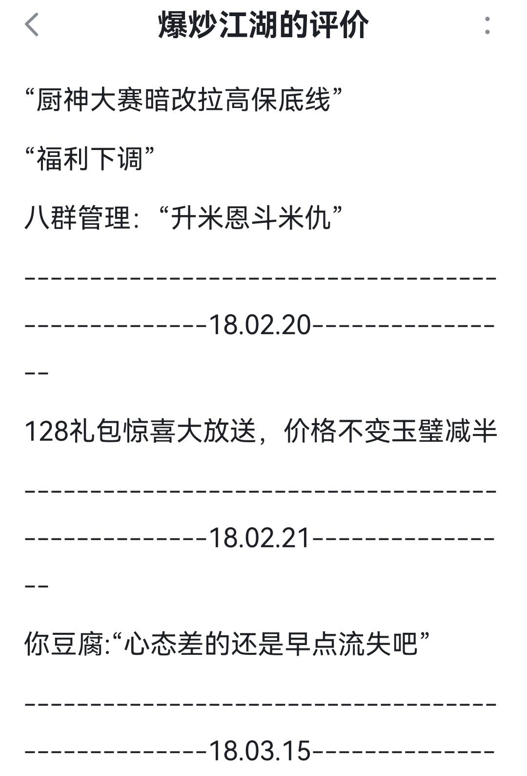 游戏评论里往前翻翻看看前几年差评 才发现是我天真了。升米恩,斗米仇这话原来是出自官方群管理,怪不得一些紧跟官方的护官宝会一脉相承地使用同一套话术。