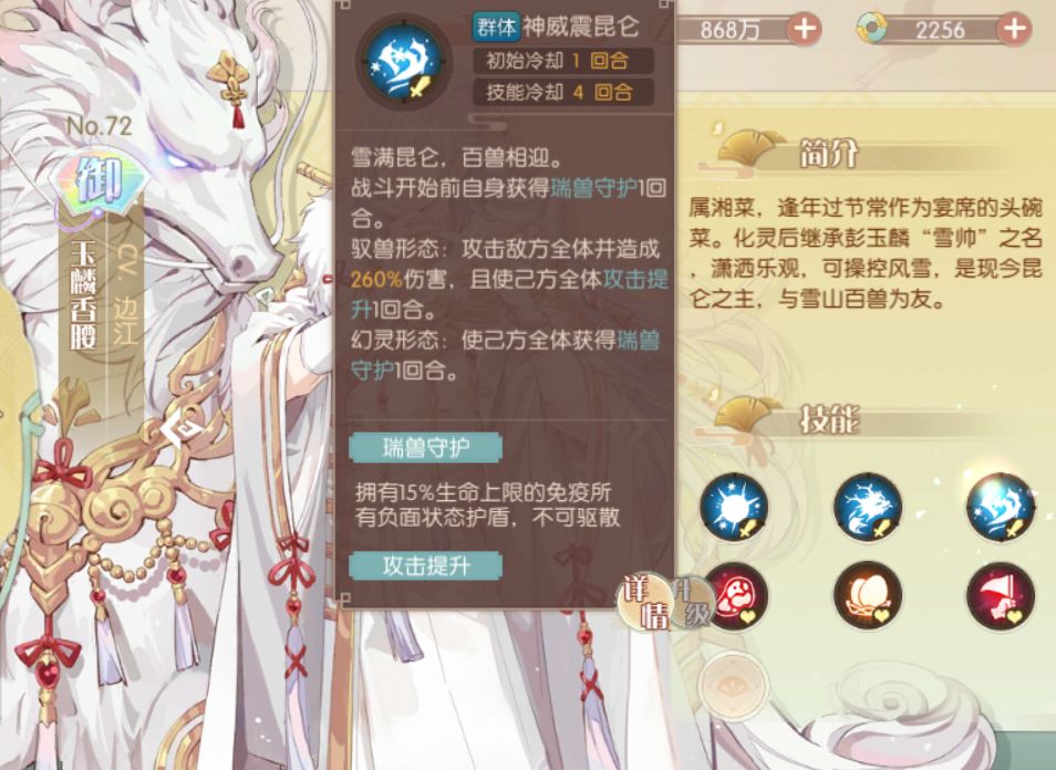 死掉形态.普攻给所有队友加少量血.被动是只要自己在死掉形态,全体队友加25%攻击(不能超过日月贝35%的防御数值).大招是攻击对方全体造成百分比生命伤害(7%),然后让对面沉默两回合.这个形态普攻四回合会自动释放大招.这时候换形态的冷却已经好了,被打死就可以继续换形态.