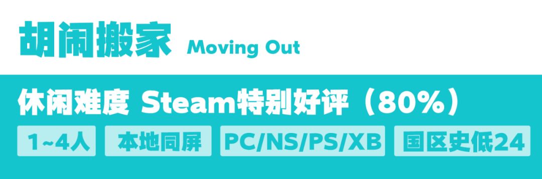基于物理引擎,人均成龙的沙雕搬家游戏,从传菜变成传家具,上能大力飞电视,下能巧力穿墙板。能在鬼屋里搬、实验室搬,甚至能在火箭和飞机场搬。总之就是怎么无厘头怎么来。游戏的第二部也即将发售,喜欢本作的话还可以期待一波。