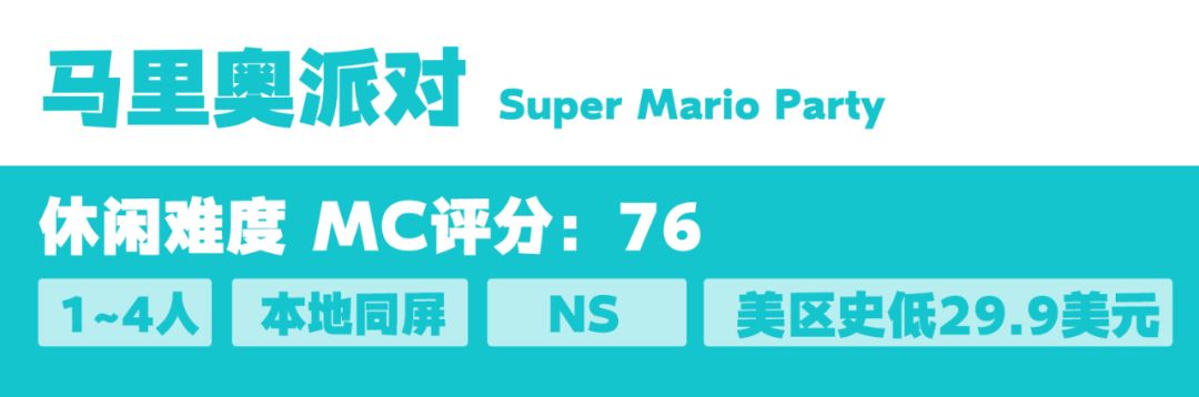 派对游戏标杆作,如果没玩过这个系列的话更推荐有体感小游戏的《马里奥派对》而不是最新作《马里奥派对:超级巨星》。