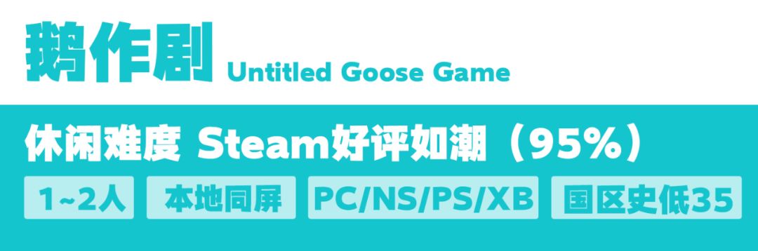看着游戏里的NPC一次次被我们的大鹅搞破防不禁心中暗爽,有时候觉得自己有点太坏了,甚至想找个铁锅把自己炖了。单人也能玩,双人合作搞笑程度加倍,谜题稍微需要点脑子,不算太难,美中不足的是流程偏短,打折入不亏。