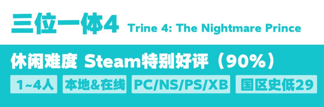虽然Steam评价“只有”特别好评,但实际上大部分差评是吐槽线上联机太卡的,如果是本地同屏多人的话绝对配得上一个好评如潮,这个系列最大的卖点就是精美的画面,尤其是最新的第四代,说每一帧都能当壁纸也不夸张,非常适合喜欢华丽画面的玩家。解谜设计也很巧妙,加上不同角色的技能和天赋,能玩出很多花样。