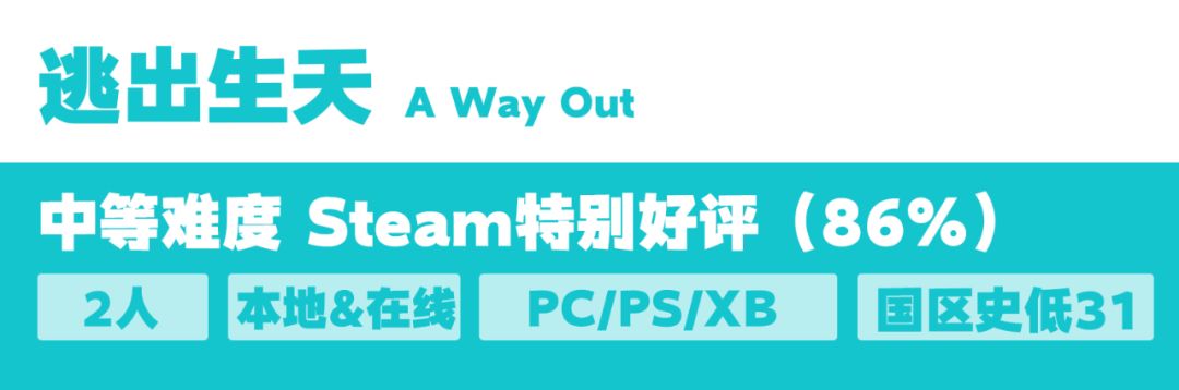 《双人成行》制作人之前的作品,专门为双人游玩打造,越狱题材,故事结局神反转,如果你喜欢《双人成行》,你也会喜欢它。
