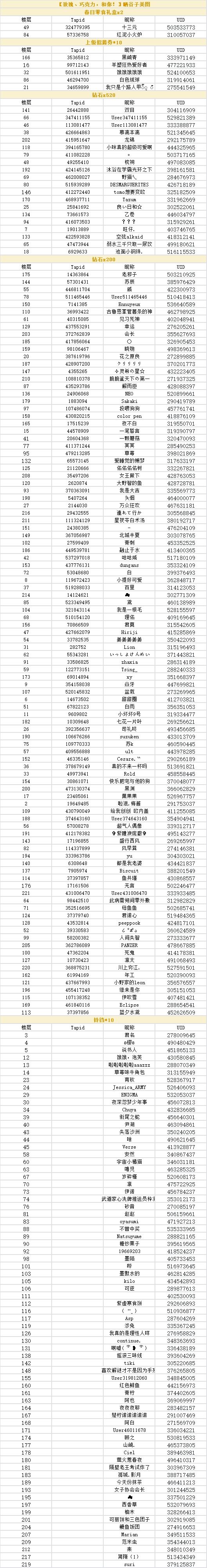 制作人们久等啦,让我们恭喜以下幸运的制作人们!奖励会在7个工作日内发放到制作人的礼物盒中,请注意查收~!