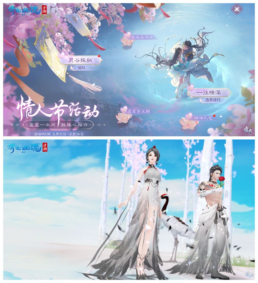 2月11日至2月14日,倩女手游情人节系列活动浪漫开启!限定活动【灵谷探秘】、【一往情深】浓情上线。活动期间不仅每日都有经验雨,更有情人节超值礼盒任君挑选,全新节日时装【云鹤吟】参与活动免费获取!甜蜜双人动作限时返场,【相依相偎】全新上架。三界相伴互赠鲜花,让TA知晓你的爱意!