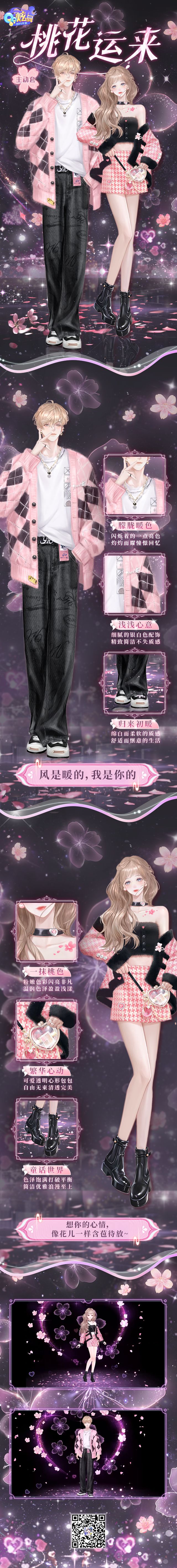 本期超凡为主动交互套装哦~装备【主动徽章-桃花天降】和【臻品及以上品质套装】后可展示主动效果,伴侣双方同时装备即可解锁特殊双人展示效果!