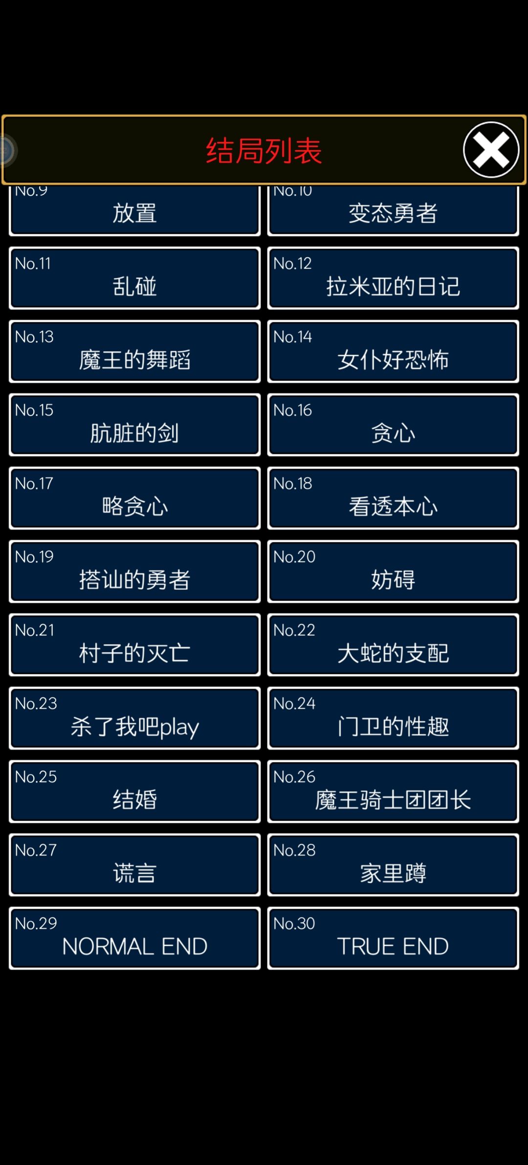 结局30:在完成上述所有的结局后再进最后一关,选择多出的选项:从了公主