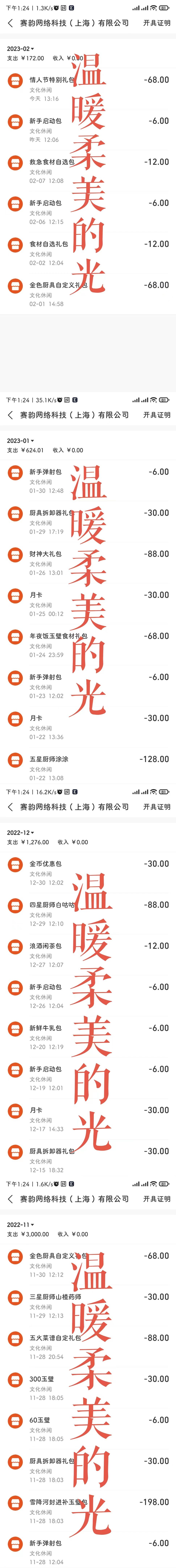 下图第一张是我目前的氪金记录,因为去年因为壁池爆率一事已经开过一次票,并且套鹿提供的开票申请系统只能开今年的发票,所以我从今年的账单开始演示。