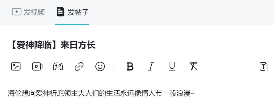 2.使用【发长帖】在本论坛综合板块发帖,标题须统一前缀为“【爱神降临】”;