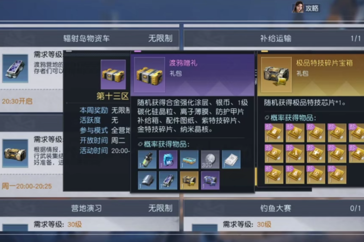 在强大的敌人,也抵抗不了团结的力量。营地成员团结一心,打败BOSS不是难事。但要注意排名,排名越高,金币和银币的奖励也就越多。另外,副本结束后,玩家还可以获得渡鸦赠礼,这份奖励可是相当丰厚的,运气好的幸存者,可以开出极品特级碎片宝箱和稀有特级碎片宝箱,累计五十个碎片,就能合成一个特级芯片,这可是提升战斗力的好东西!