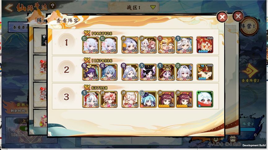 在斗法开启期间,玩家点击进入阵地,可查看阵地上敌人的阵容。普通阵法为一队,上级阵法为三队。