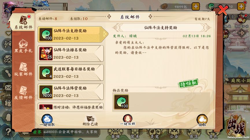 在斗法结束后,萌主们将在邮件内领取到属于你的奖励!