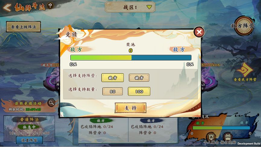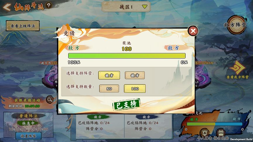 萌主们可在斗法期的第1天进行竞猜,还可以押注,不同段位压中与没压中各自都有对应的奖励,结算后发奖。