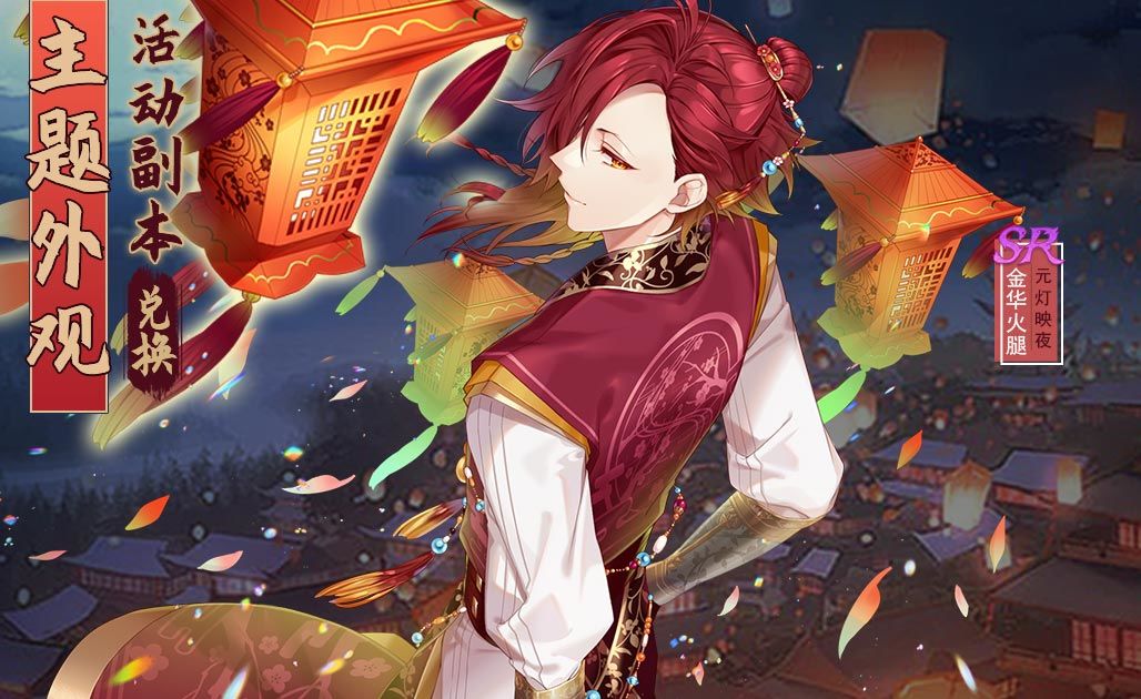 活动描述:活动期间,往期活动副本复刻,御侍大人可重新体验副本剧情并收集道具,兑换SR金华火腿复刻外观-元灯映夜。