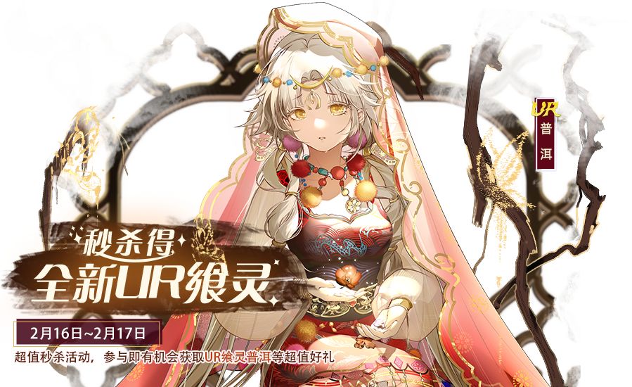 活动描述:活动期间,购买指定礼包开启限时秒杀,获取礼包内幸运字符即有机会兑换UR飨灵-普洱等超豪华大礼哦~