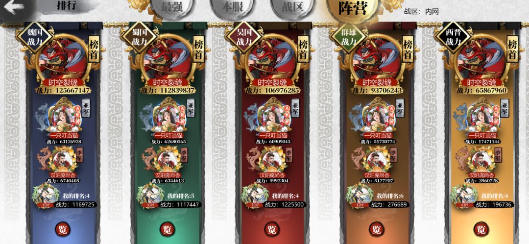 ● 新增战区阵营战力排行榜,每个阵营独立分开