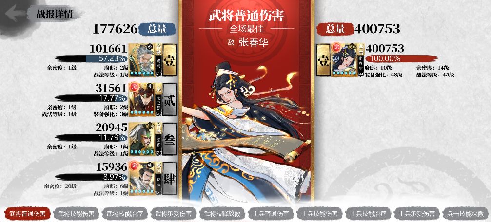 ● 战斗结算详细战报里会显示武将的养成状态