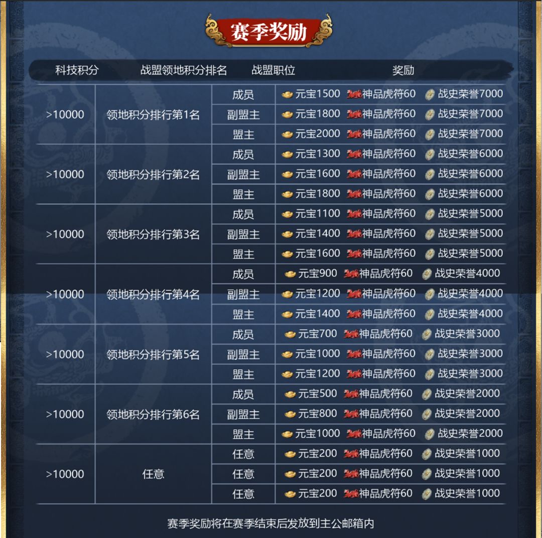●调整了赛季奖励内容,新增领地排行第六的奖励内容