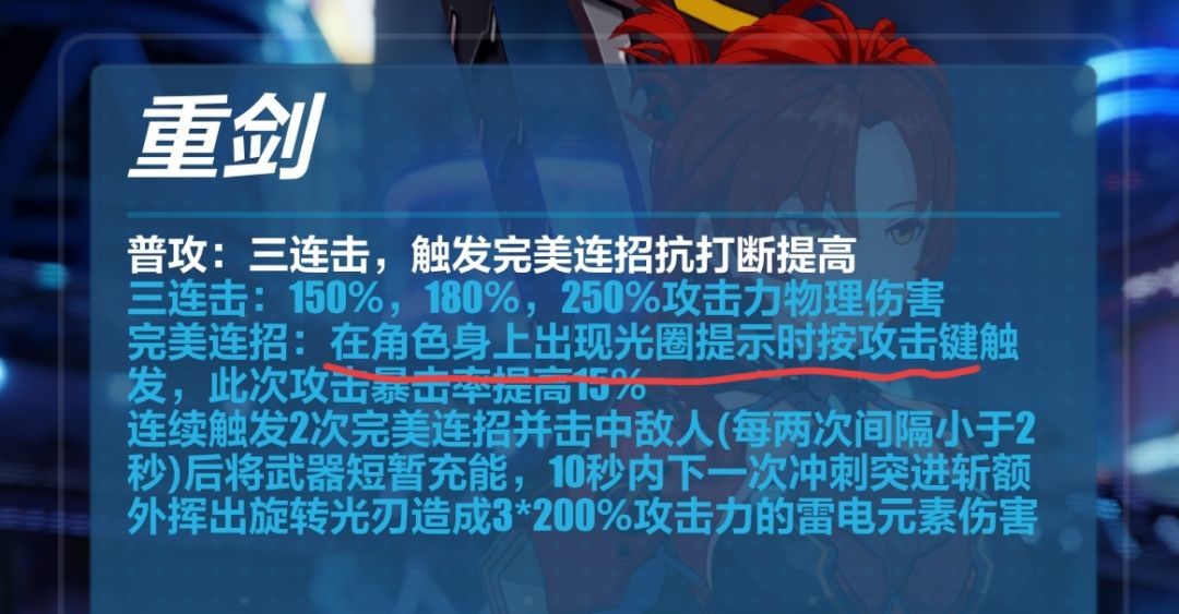 所以深红的攻击最好按节奏来,身上光圈重合时按下,每次普攻大概间隔一秒左右,看不清的话注意音效,会有特别的音效提醒触发完美连招,而不要一直按攻击键,而完美连招有以下这些效果