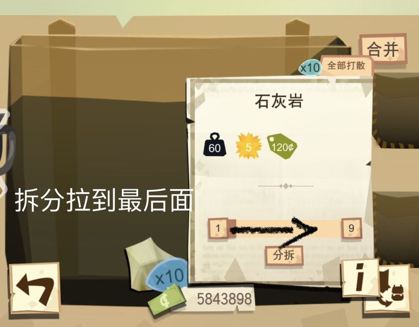 第二步:将分拆条拉到最后面,从后往前分拆,分出组里等级最高的物品