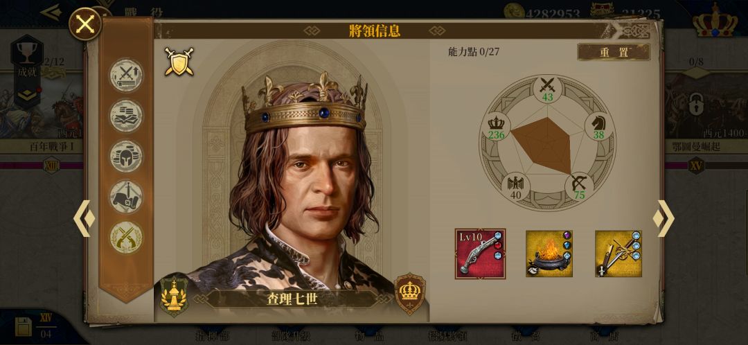 总结,他是一个t1的弓将,t0的内政将。直氪328可以获得将领加专武。拥有专武的必培养,但是也没必要真的去强行氪他,毕竟通行证拿个查皇专武+阿提拉特权,其实征服体验就不错了,阿提拉目前也能勉强算t1弓。