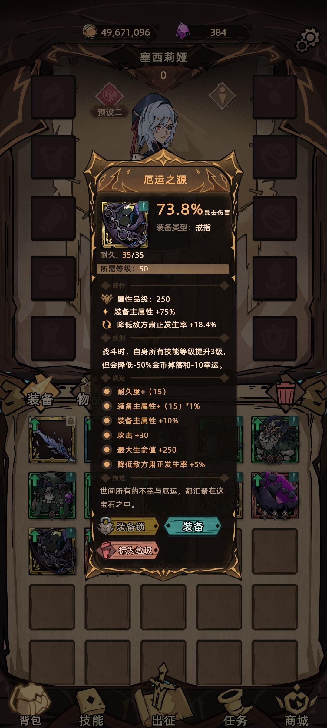 首饰用神选,无限统治和厄运之源(堆肃正和技能等级)。