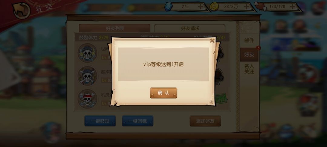 3 好友体力一键回复和一键领取,为什么要开贵1呢,那个游戏也没见在这个地方设计贵族的
